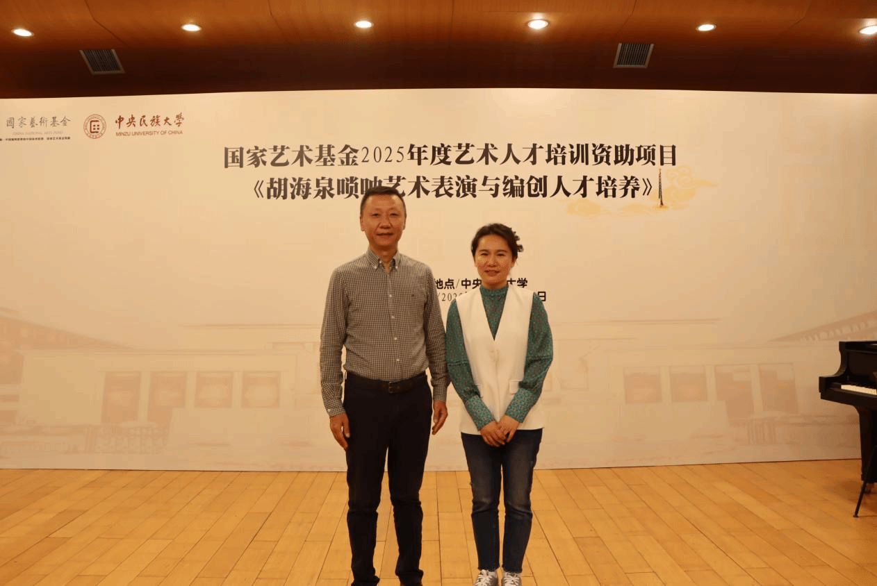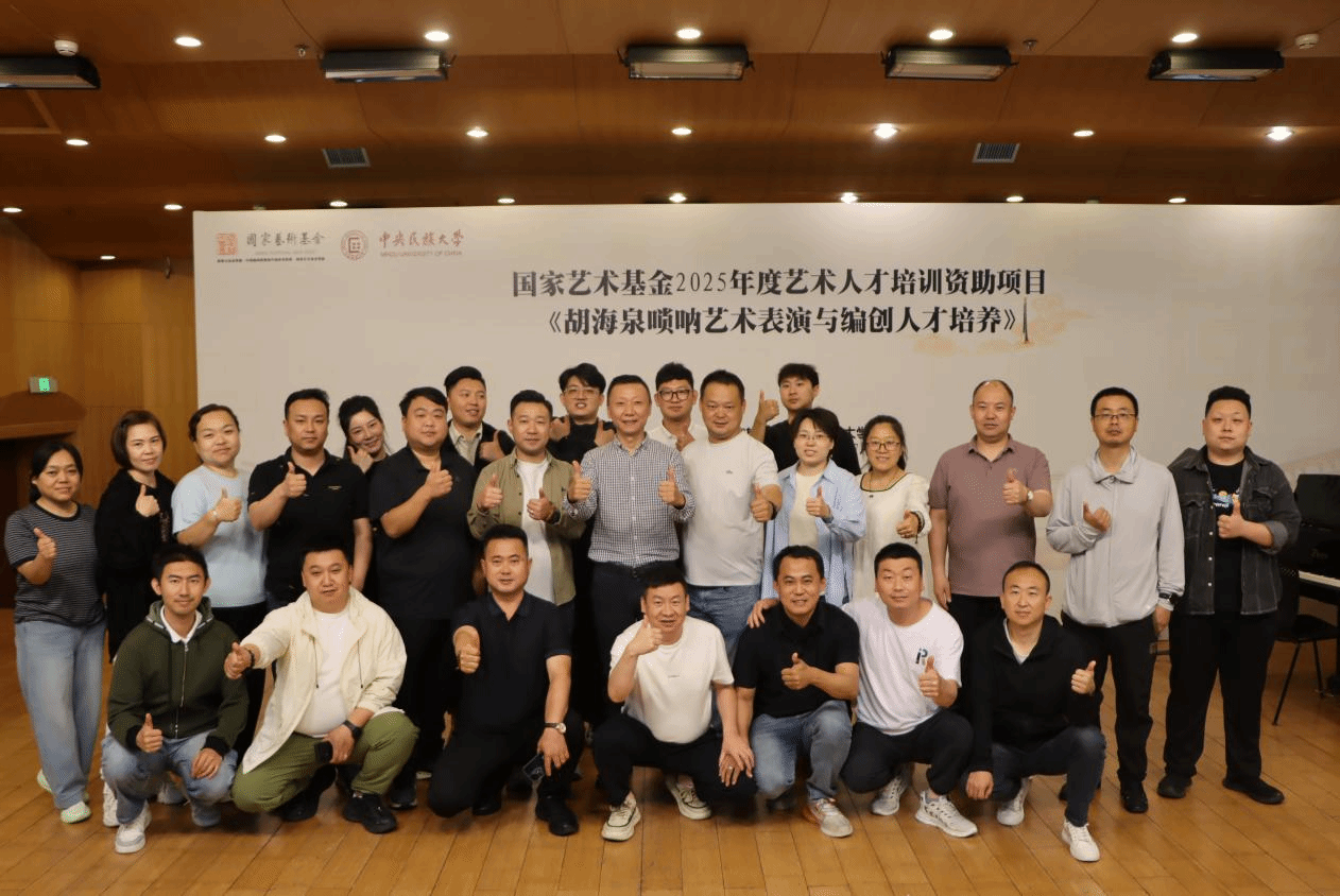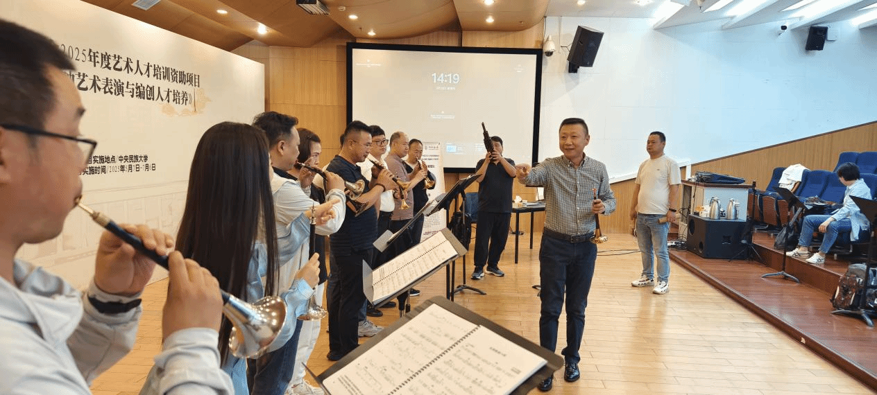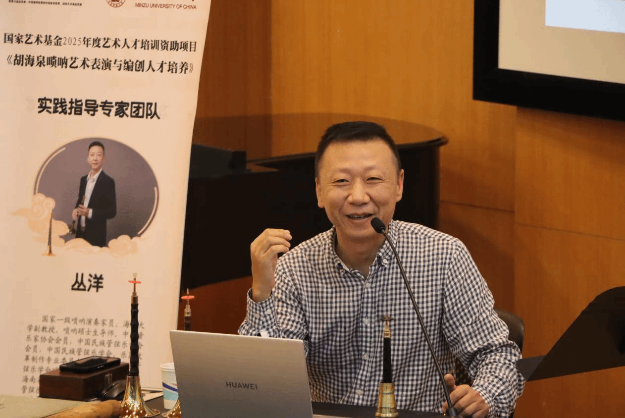 2025年5月23日,新葡京官网音乐系丛洋副教授,受中央民族大学音乐学院胡美玲老师之邀,出席国家艺术基金2025年度艺术人才培训资助项目活动——《胡海泉唢呐艺术表演与编创人才培养》,为全国各省40多名优秀学员进行唢呐专家授课。