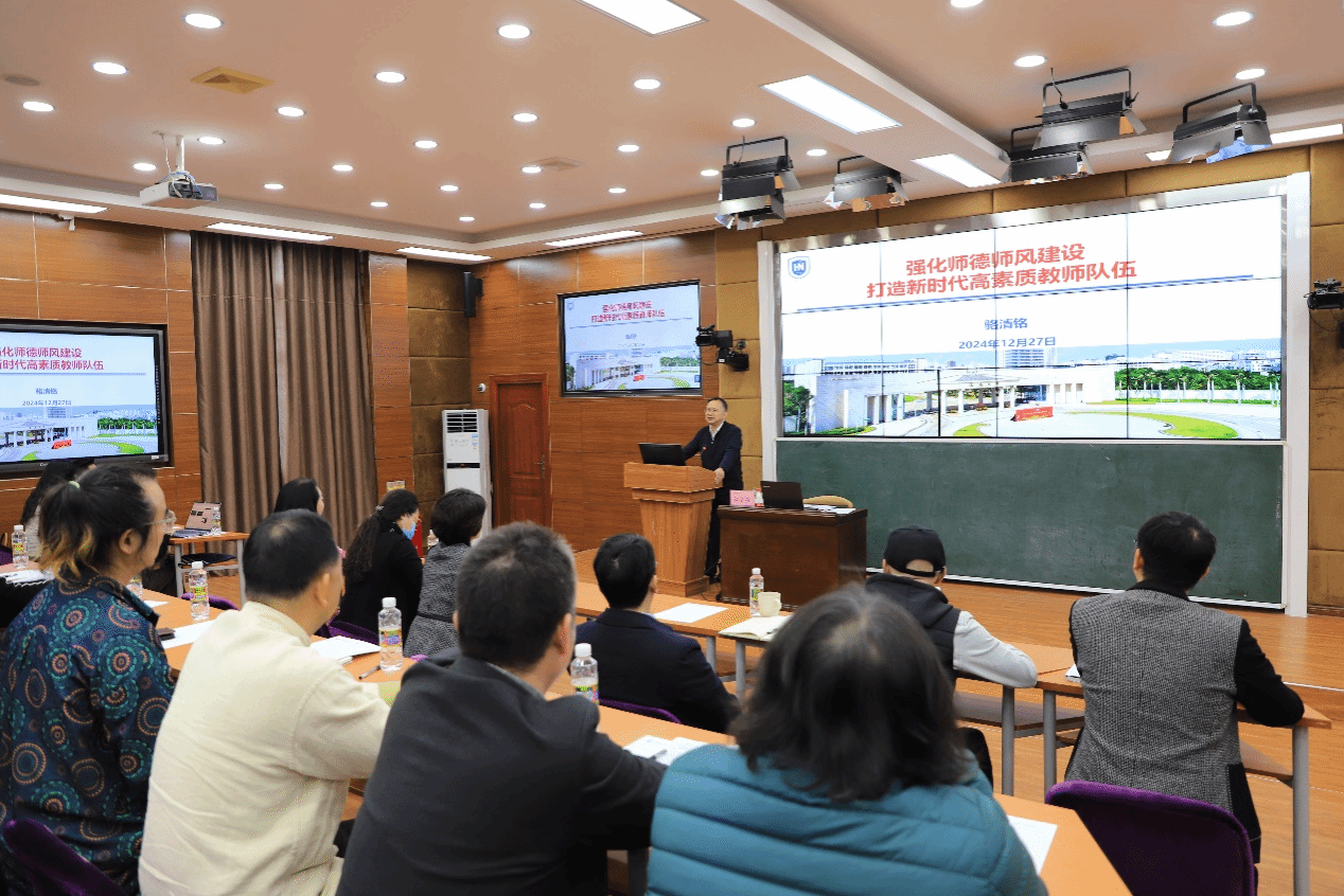 12月27日下午,新葡的京集团8814校长、中国科学院院士骆清铭在三号教学楼211教室为新葡的京集团8814作师德师风专题宣讲。学校党政办、人事处相关负责同志出席会议,学院领导班子与全体教职工参加会议。宣讲会由学院党委书记何映敏主持。