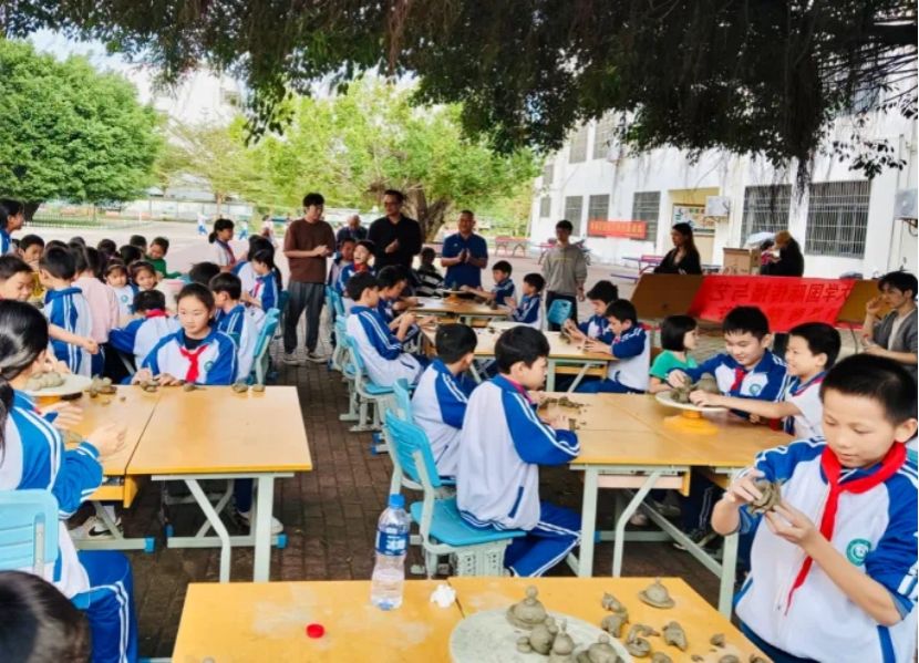 2024年1月3日,新葡京官网2022级雕塑班12位学生开启为期4天的艺术实践课。首日走进琼中县黎母山镇新进中学,开展“助力乡村教育,护苗快乐成长”活动,为新进中学40名学生普及雕塑知识。