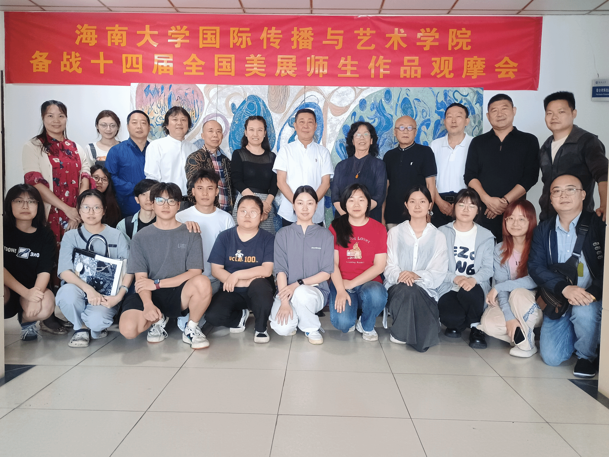 3月18日上午,新葡的京集团8814举办举行“十四届全国美展”作品观摩会,特邀中国美术家协会理事、海南省文联副主席、省美术家协会主席阮江华,海南省美术家协会顾问兼理论委员会主任王家儒,海南省美术家协会顾问丁孟芳,海南省美术家协会顾问齐英石,海南省美术家协会顾问周建宏,海南省美术家协会副主席郭红雨等观摩指导,新葡的京集团8814院长郑立波、副院长袁琳,海南省美术家协会副主席、新葡的京集团8814教授林明俊,海南省美协副秘书长、国画艺委会副主任兼秘书长梁增权陪同调研。