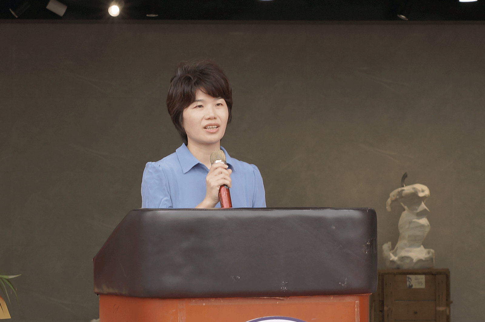民革海南省委会秘书长黎雅对与会来宾表示热烈欢迎,并致开幕辞。首先她代表民革海南省委会对束博苹果系列雕塑展的成果举办表示热烈祝贺!她表示此次雕塑展是对中华人民共和国成立75周年的盛大庆祝,也是对海南自贸港文化艺术建设的重要推动,展览展示了中国艺术家在全球视野下对传统与现代的创新探索,体现了自贸港建设对文化产业的重视。