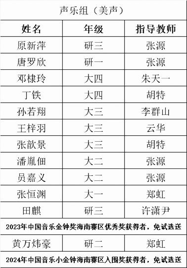 据悉,除声乐组外,本次金钟奖校级选送工作还涉及钢琴、器乐专业组别。新葡京官网音乐专业协同备战,共选送声乐组学生23人,青年教师3人;钢琴组学生6人、青年教师3人;器乐组学生3人。