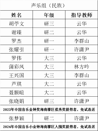 中国音乐金钟奖是经中宣部批准设立,由中国文学艺术界联合会、中国音乐家协会共同主办的、全国唯一常设的音乐综合性大奖。创办于2001年,通过比赛的方式,遴选出优秀的青年音乐人才,对其进行表彰和奖掖,每两年举办一届,至今已举办14届。本次新葡的京集团8814校内选拔赛是海南赛区的重要组成部分,旨在发掘和培养优秀音乐人才。由新葡京官网声乐专业教师组成的评审团本着“公平为首、择优为先”的原则,最终遴选出23名优秀学生选送省赛。