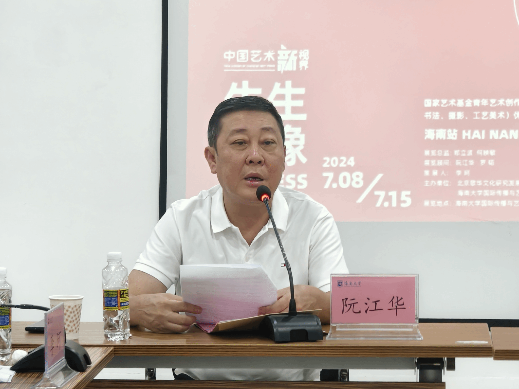 中国美术家协会理事、海南省文联副主席、海南省美术家协会主席阮江华在致辞中表示,国家艺术基金是我国最高层次对艺术家、艺术作品与艺术创作状态的支持,自从2014年开始实施,已经进行了10年,产生了一大批优秀艺术创作成果,其中海南省近年获资助的艺术家、艺术创作项目与艺术人才培养项目数量逐年上升。国家艺术基金对于鼓励艺术精品力作的推出,帮助青年艺术家的成长具有重要的意义,已经成为衡量地区艺术创作水平与活跃程度的重要指标。