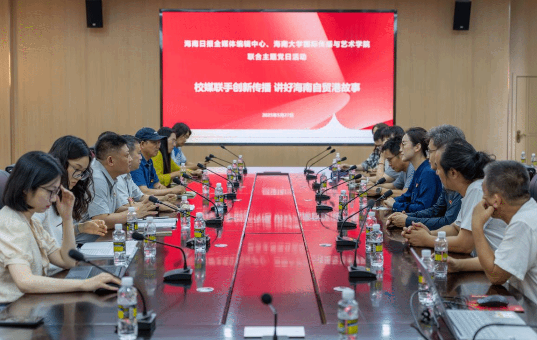 5月27日下午,新葡京官网教工党支部及学生党员代表与海南日报全媒体编辑中心新媒体部党支部联合开展主题为“校媒联手创新传播 讲好海南自贸港故事”的党日活动,通过“观摩学习+座谈交流”的形式,以党务促业务,研讨深化校媒合作,共探技术驱动下的创新传播。
